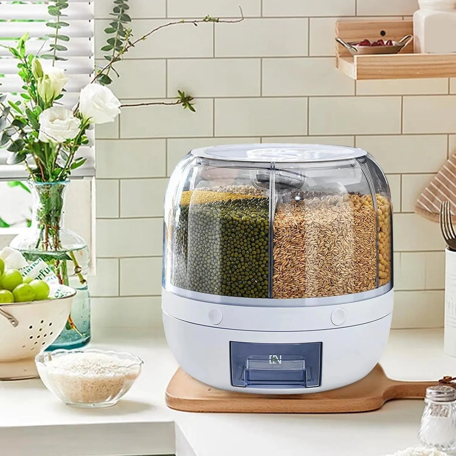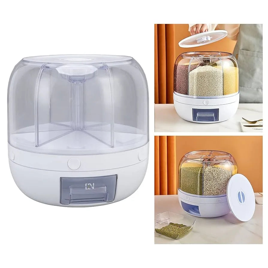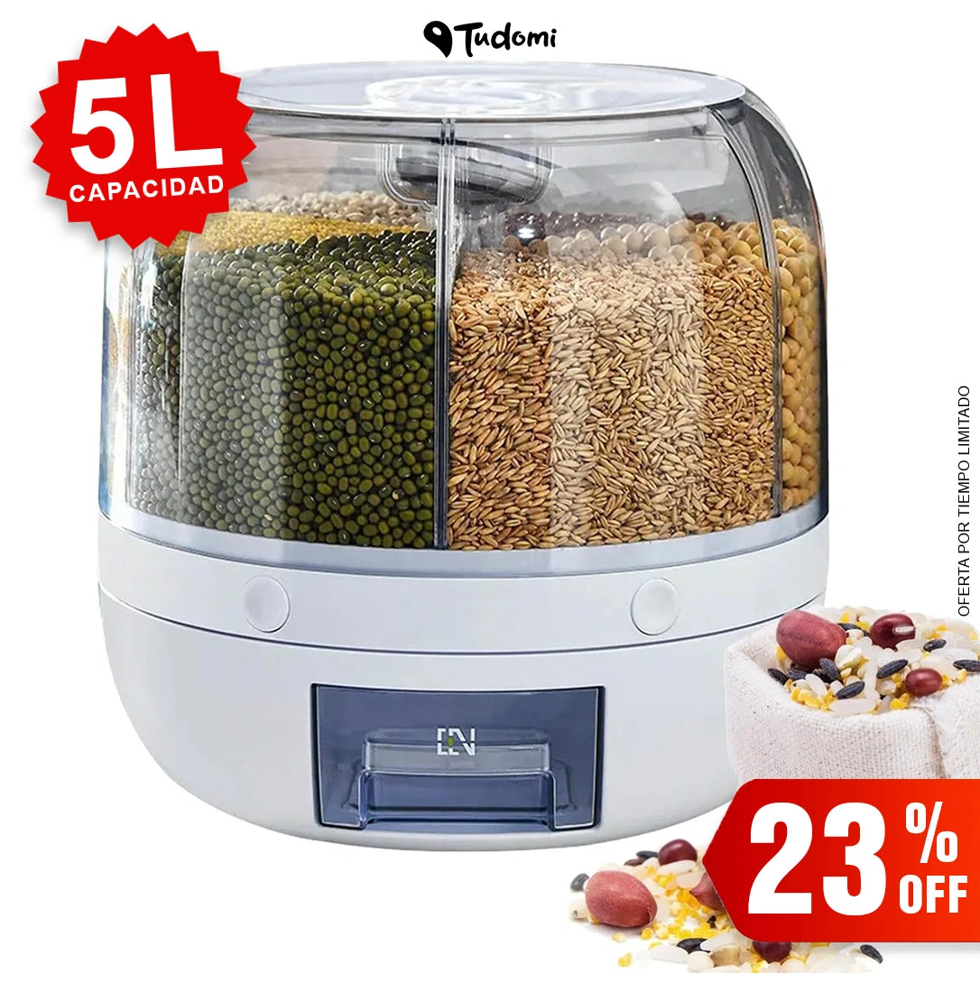 Dispensador giratorio de granos y cereales con 6 divisiones