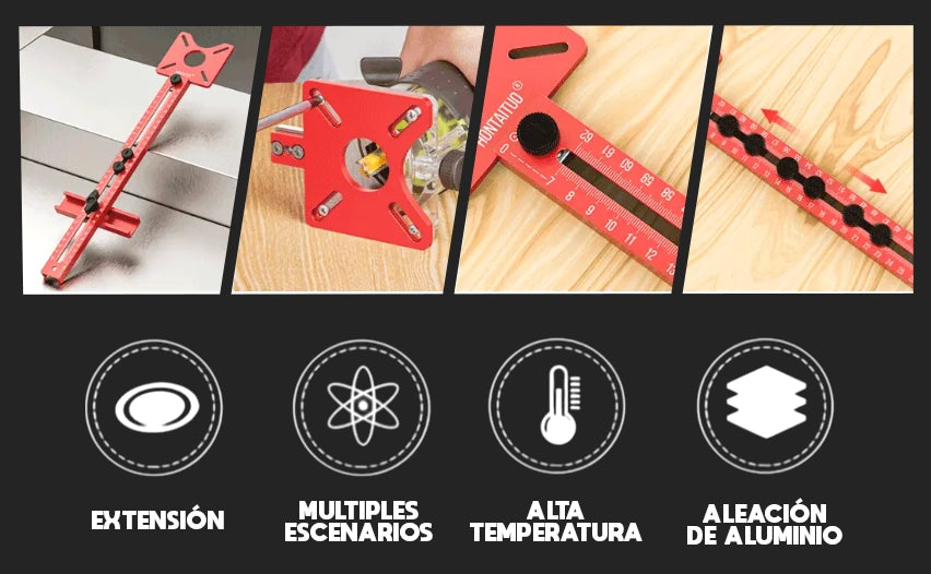 Descubre el Soporte de Corte 4 en 1, la herramienta multifunción que garantiza cortes exactos y enrutados perfectos, transformando cada proyecto en una obra de arte profesional.