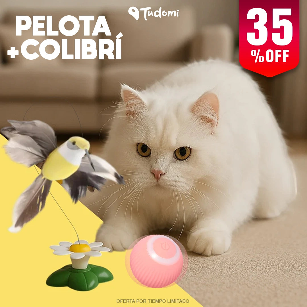 JUGUETE VOLADOR DE COLIBRI + PELOTA PARA GATO