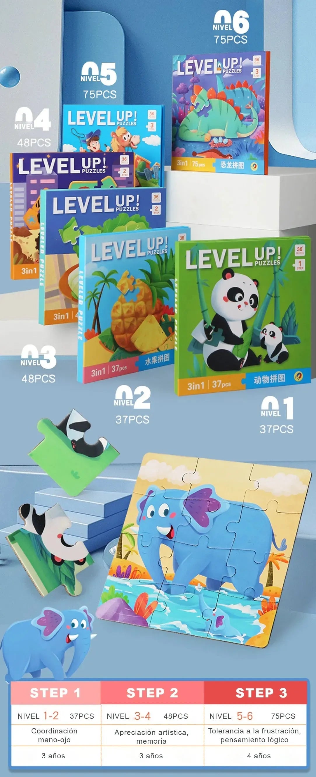 Los rompecabezas son herramientas poderosas para impulsar el desarrollo cognitivo, y si son magnéticos, ¡aún mejor! Este juego está diseñado para adaptarse al crecimiento del niño: 9, 12 y 16 piezas según su habilidad. Las piezas imantadas evitan frustraciones al armar y fomentan la concentración, coordinación y lógica de forma intuitiva y entretenida.