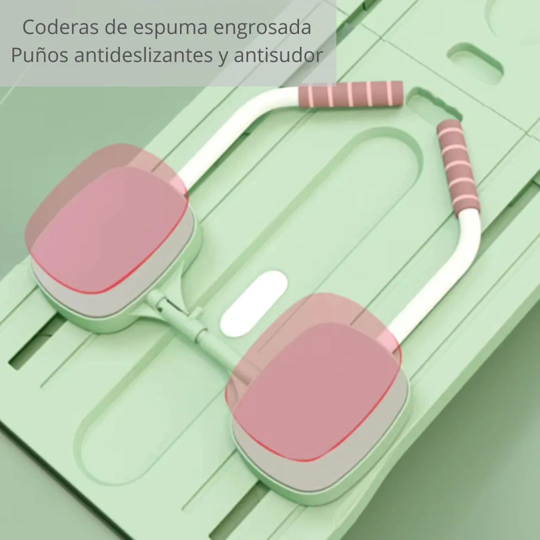 Incluye rodillo AB, barras de empuje, soporte de plancha y bandas de resistencia.