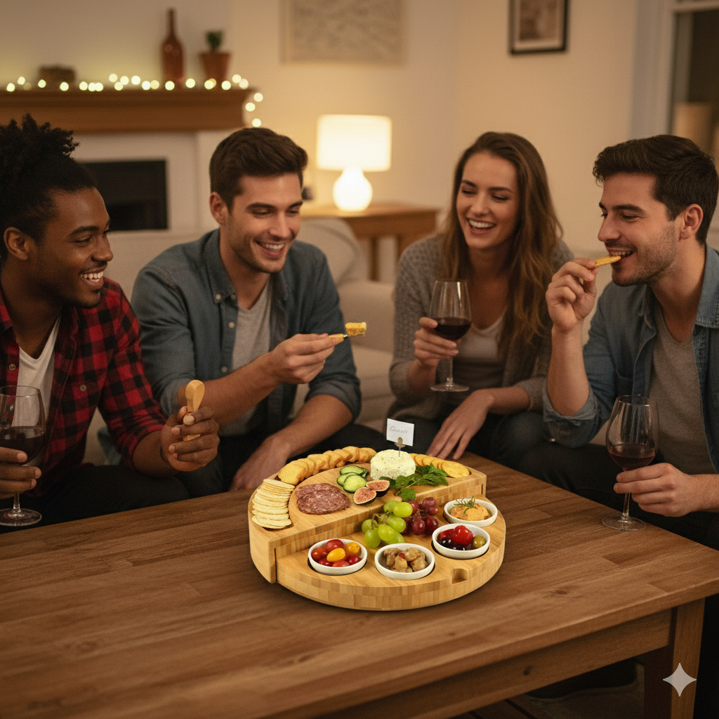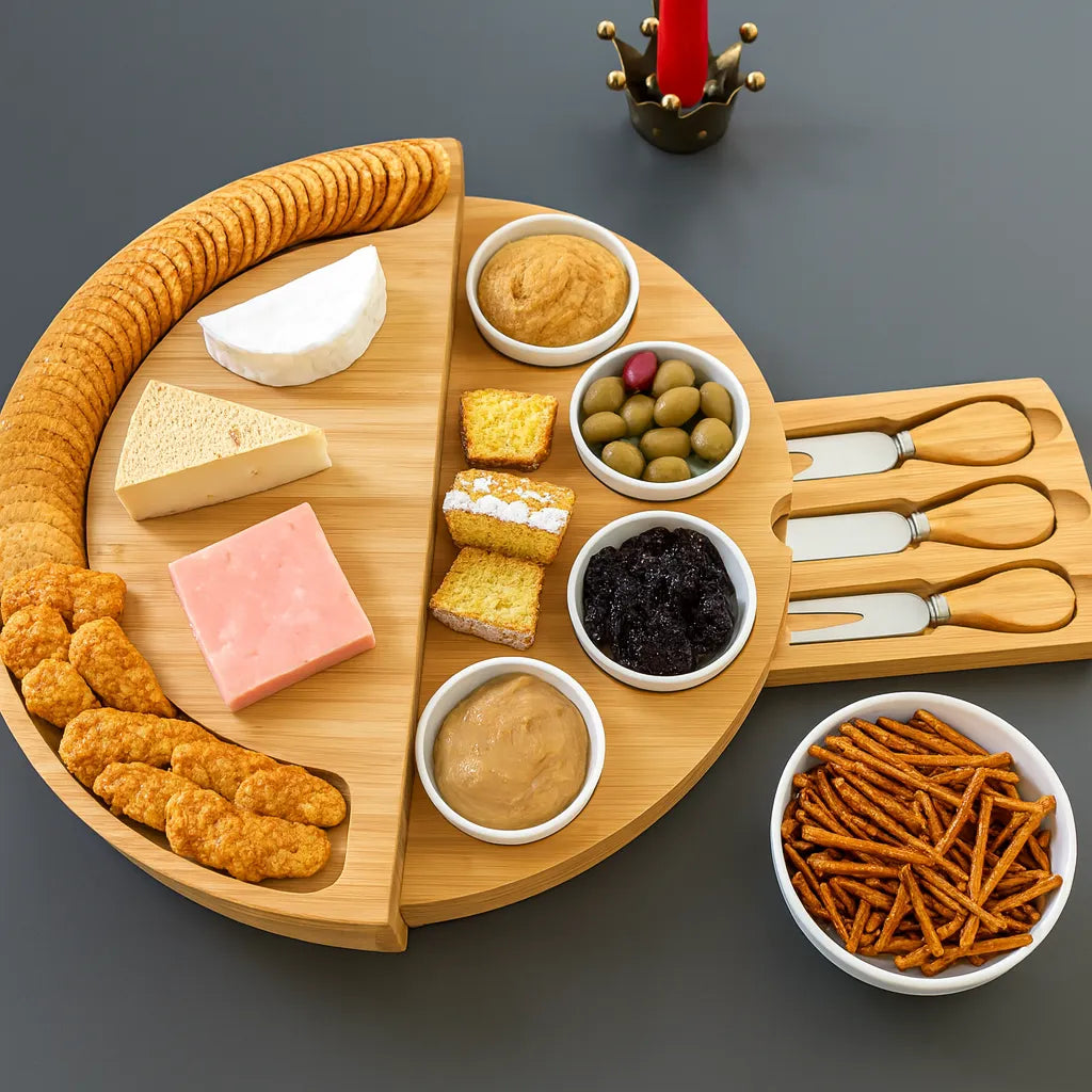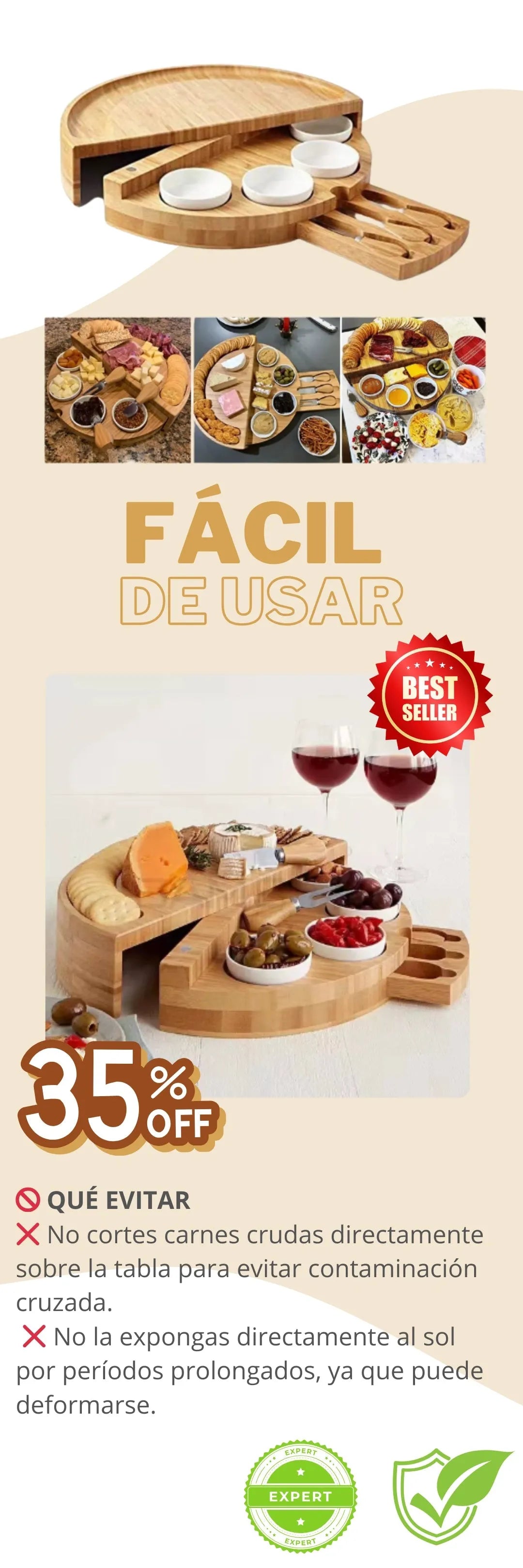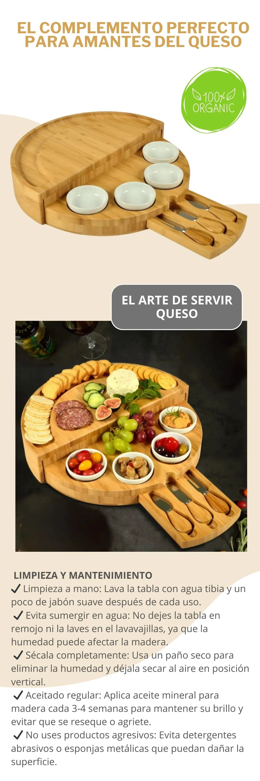 Convierte cada reunión en un momento elegante y especial con este tablero de para quesos de bambú